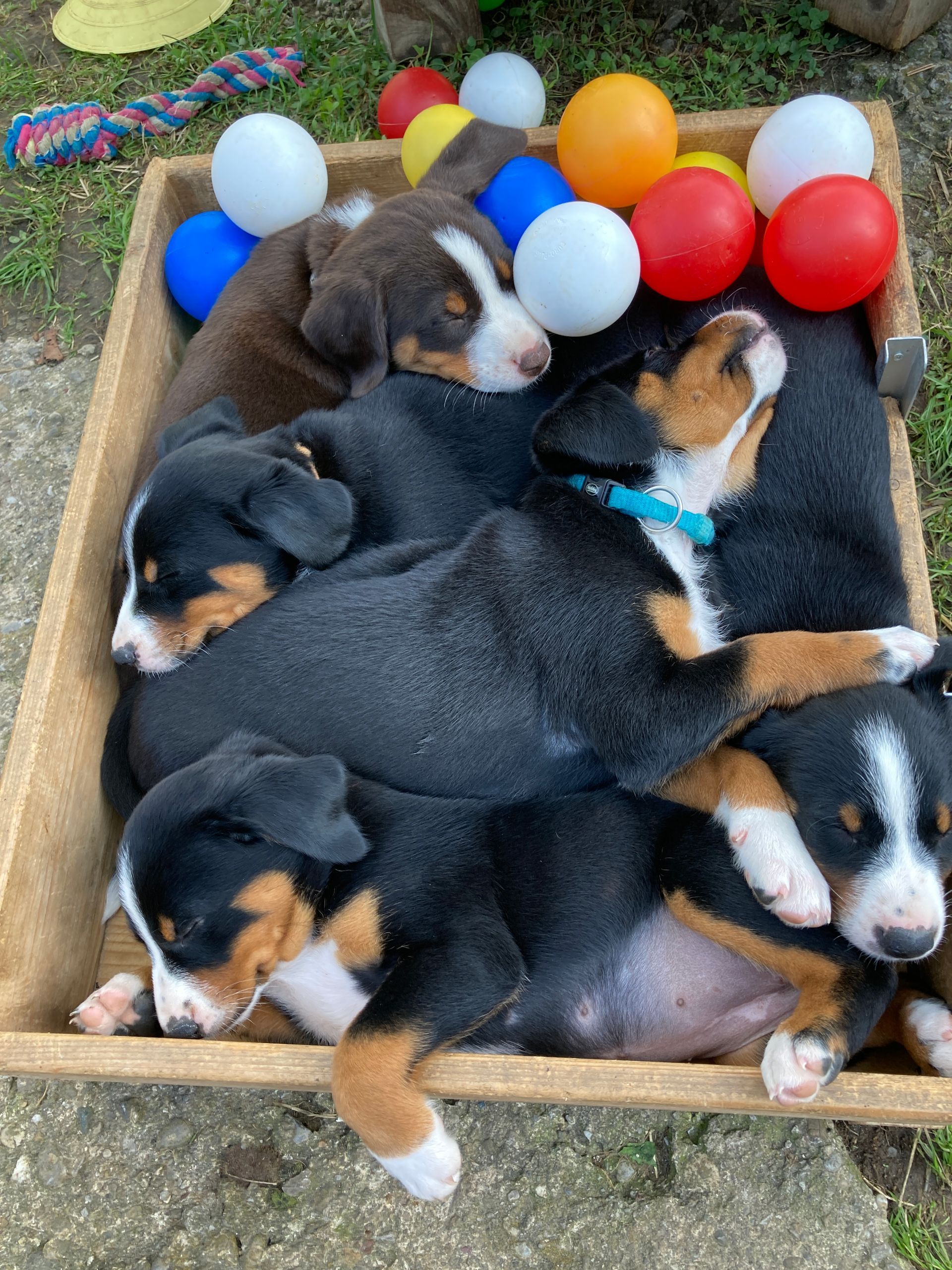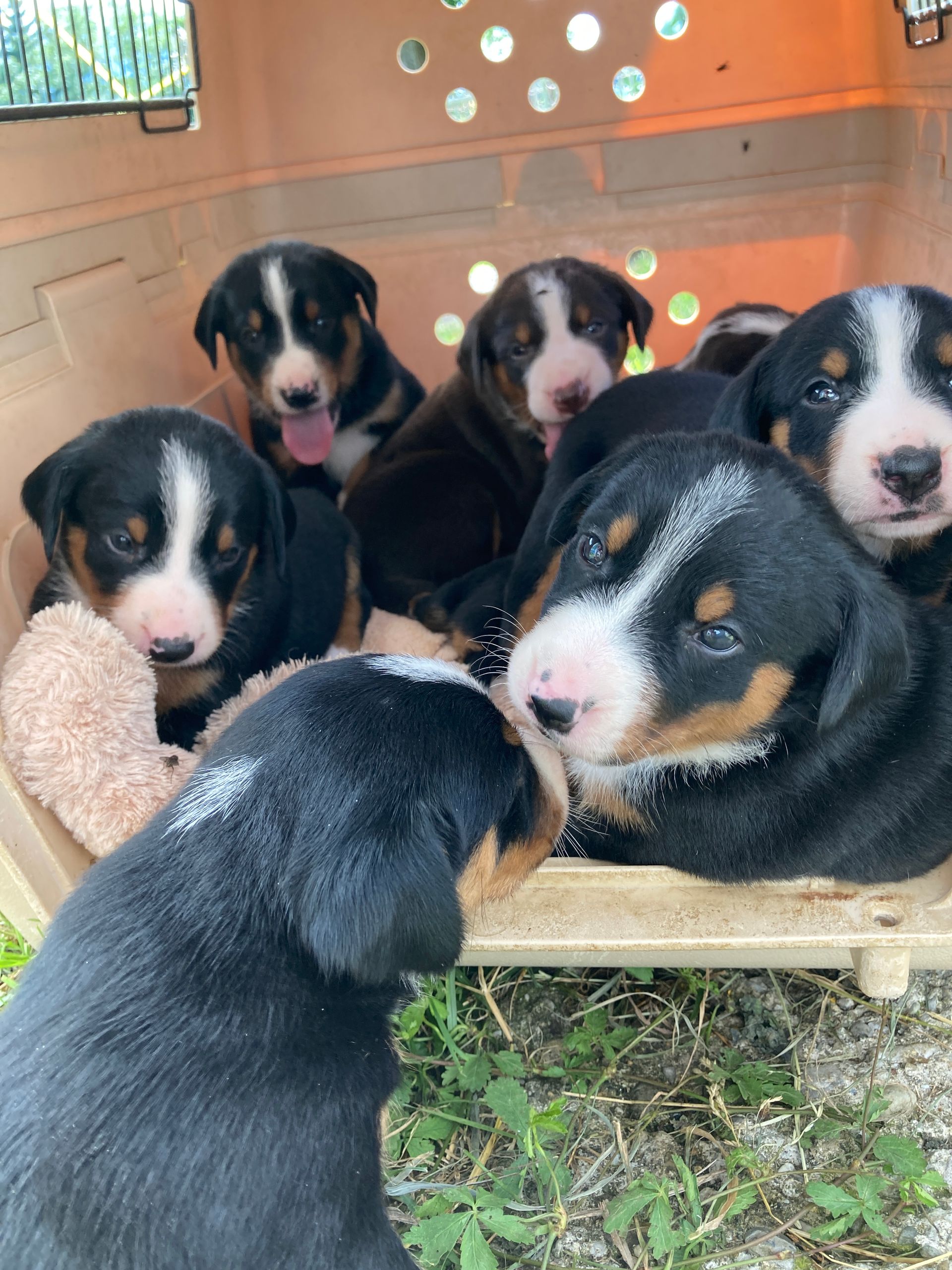 Namen der Welpen: Alesco, Amiro (am 24. Juni gestorben), Anton, Aika, Alanja, Anita, Anja