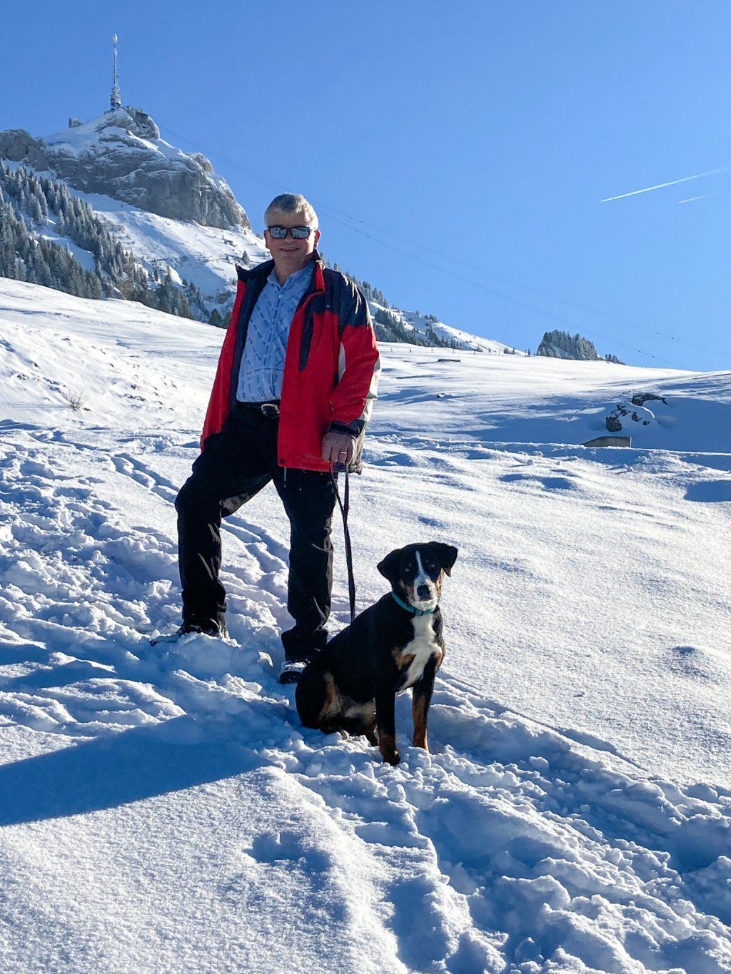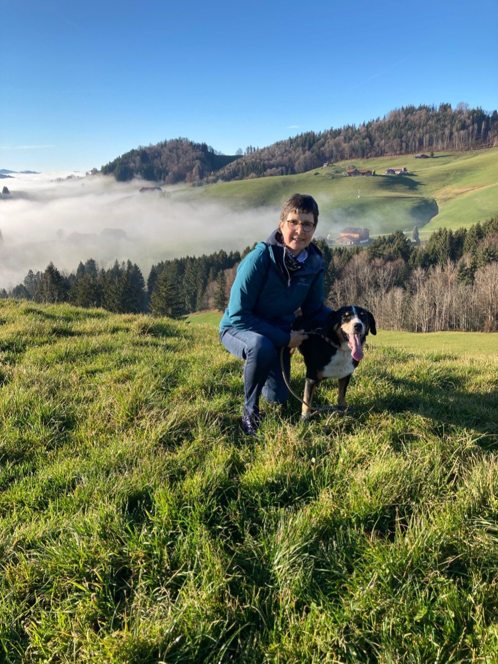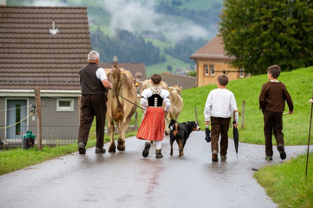 In Stefans Familie hatte das "Öberefahre" lange Tradition. Damit ist der Alpaufzug oder Alpabzug gemeint, bei dem die Sennen das "Sennehääss" tragen, und selbstverständlich der Bläss dazugehört. Während vielen Jahren nahmen wir mit der ganzen Familie an der Viehschau in Appenzell teil. Auch da begleitete uns immer eine der Hündinnen.
